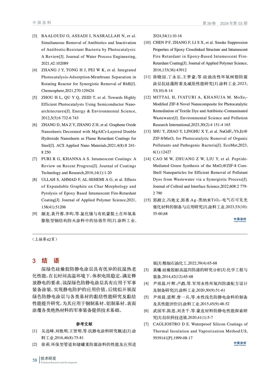 摘要:采用水熱法合成TiO2、Fe2O3的前聚體,并通過(guò)高溫煅燒制備了TiO2/Fe2O3異質(zhì)結(jié),通過(guò)XRD、SEM、TEM等一系列表征TiO2、Fe2O3的形成,紫外–漫反射光譜圖表明,TiO2/Fe2O3異質(zhì)結(jié)在可見(jiàn)光范圍內(nèi)吸光性能較TiO2和Fe2O3明顯紅移。通過(guò)Tauc曲線、Mott-Schottky曲線理論計(jì)算得出TiO2/Fe2O3異質(zhì)結(jié)的形成,該異質(zhì)結(jié)對(duì)甲基橙的180 min催化率為94%,可見(jiàn)光范圍內(nèi)表現(xiàn)出卓越的光催化活性。在內(nèi)墻涂料中添加質(zhì)量比為1∶100時(shí)對(duì)甲醛24 h 光催化降解效率為89.6%,TiO2/Fe2O3異質(zhì)結(jié)在高溫煅燒下形成一種優(yōu)良的耐高溫填料,因此在防火涂料中的應(yīng)用顯著增強(qiáng)了其阻燃抑煙性能。在防火涂料中的添加質(zhì)量比為2.5∶100時(shí),防火涂料的殘?zhí)苛繌?5%提升至39%,環(huán)氧防火涂料9.0 mm耐火230 min,呈現(xiàn)出良好的防火性能,環(huán)氧涂層黏結(jié)力強(qiáng),耐久性、機(jī)械性好,膨脹炭層強(qiáng)度高、致密性好,TiO2/Fe2O3異質(zhì)結(jié)存在還使該防火涂料具有良好的自清潔性能。