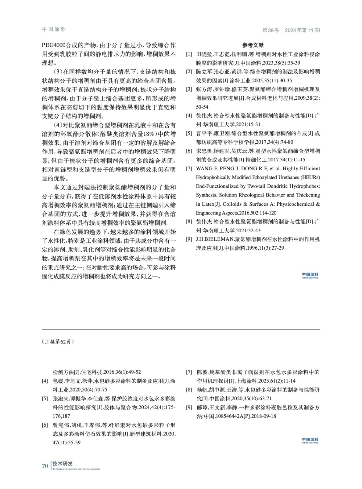 水性聚氨酯締合型增稠劑流變性能影響因素的研究
